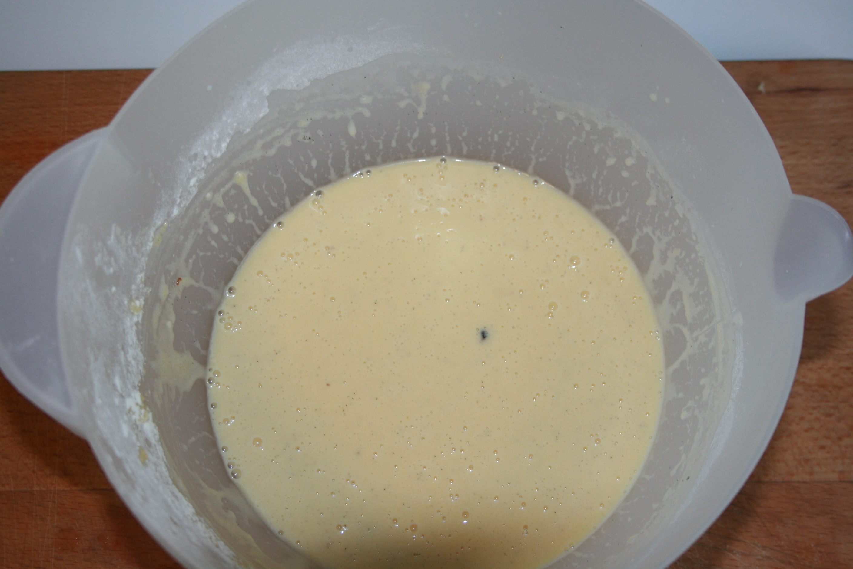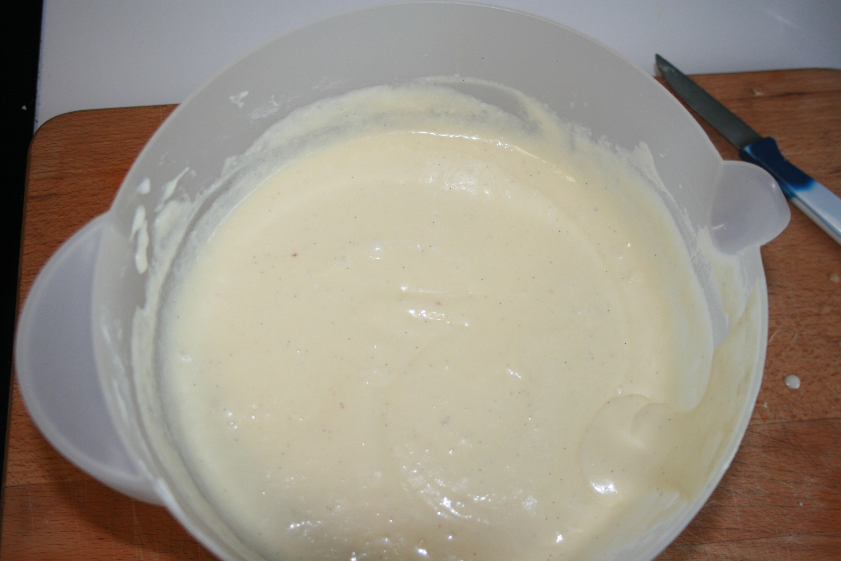 - Add the milk (first take out the vanilla fruit stick) and mix it all until it is a homogeny (homogene) mixture. Let this mixture cool down.