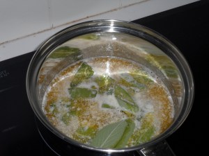 - You now put some of the butter and sage in a pot and let the butter melt on low heat