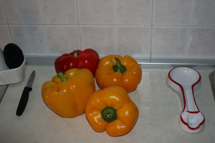 Zia had brought the biggest paprika’s I had ever seen! Apparently the ones from Piemonte are much better than the ones you buy elsewhere. When you peel them, there is still a lot of flesh left on them …