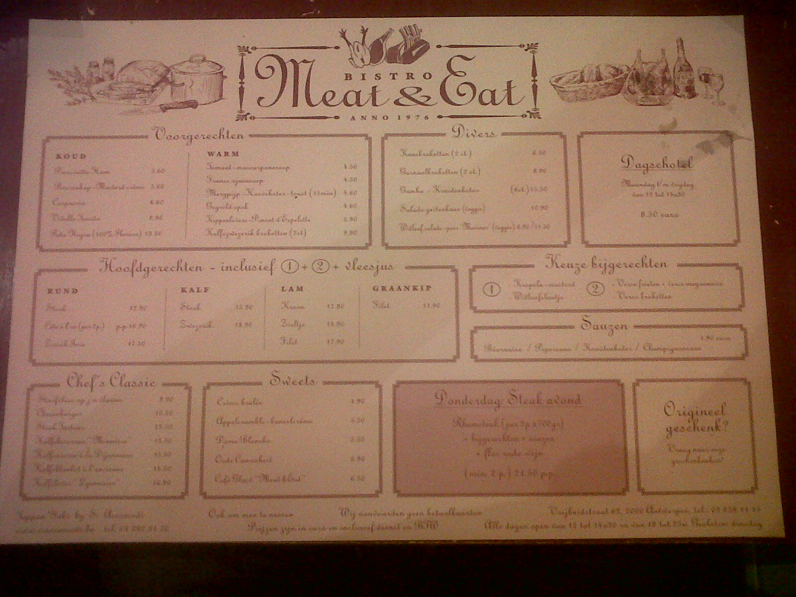 A while ago I was at this event near the marnixplaats in Antwerp and that’s when I noticed this little restaurant that really attracted me a lot called Meat and Eat… I think it was because it is small restaurant, where you can see the chef prepare your meal.