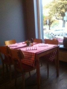 One advice, if you want to come here, you’d better book a table in advance. When booking your table you have to let know for which formula you’re going for, you can choose between day menu of a suggestion menu. The day menu would be a soup, main course and a dessert at 15EUR. The suggestion menu would be a 4 course dinner at 30EUR. Currently there is also the ‘Jong Keukengeweld’ menu, but this only until the end of ‘Jong Keukengeweld’. Both menu’s change daily, which is very remarkable (The Jong keukengeweld menu was the same over the whole period). Knowing Stephanie didn’t study at cooking school, she has a modern art background… she only started cooking after having worked for a while at the Hilton hotel… after that she decided to get her chef’s degree and she has the restaurant for about 1 year now. We went for the ‘Day menu’ as we didn’t have that much time to eat.