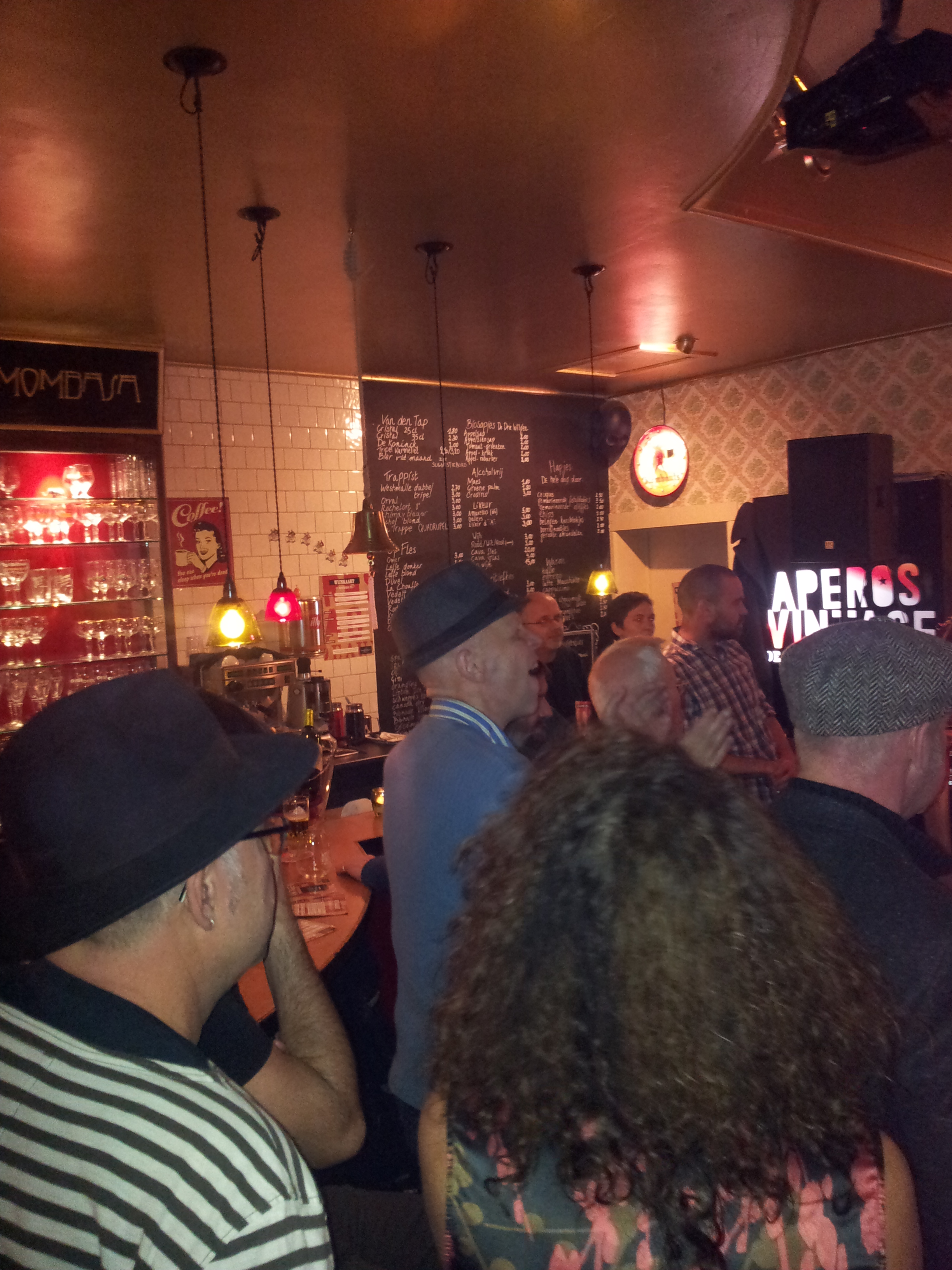 I don’t know what it was that made this better, but there was something that gave me a great feeling from the moment I walked in café Mombasa . Like I come here every week … the place was really packed! Café Mombassa is a corner bar right in front of the city hall of Borgerhout with an interior you would see in weekend issues of Weekend Knack magazine or or some other interior magazine… It doesn’t get more vintage than this. With one remarkable item, namely the original bicycle from Stanneke Ockers ok and maybe also the very large picture of him :)….