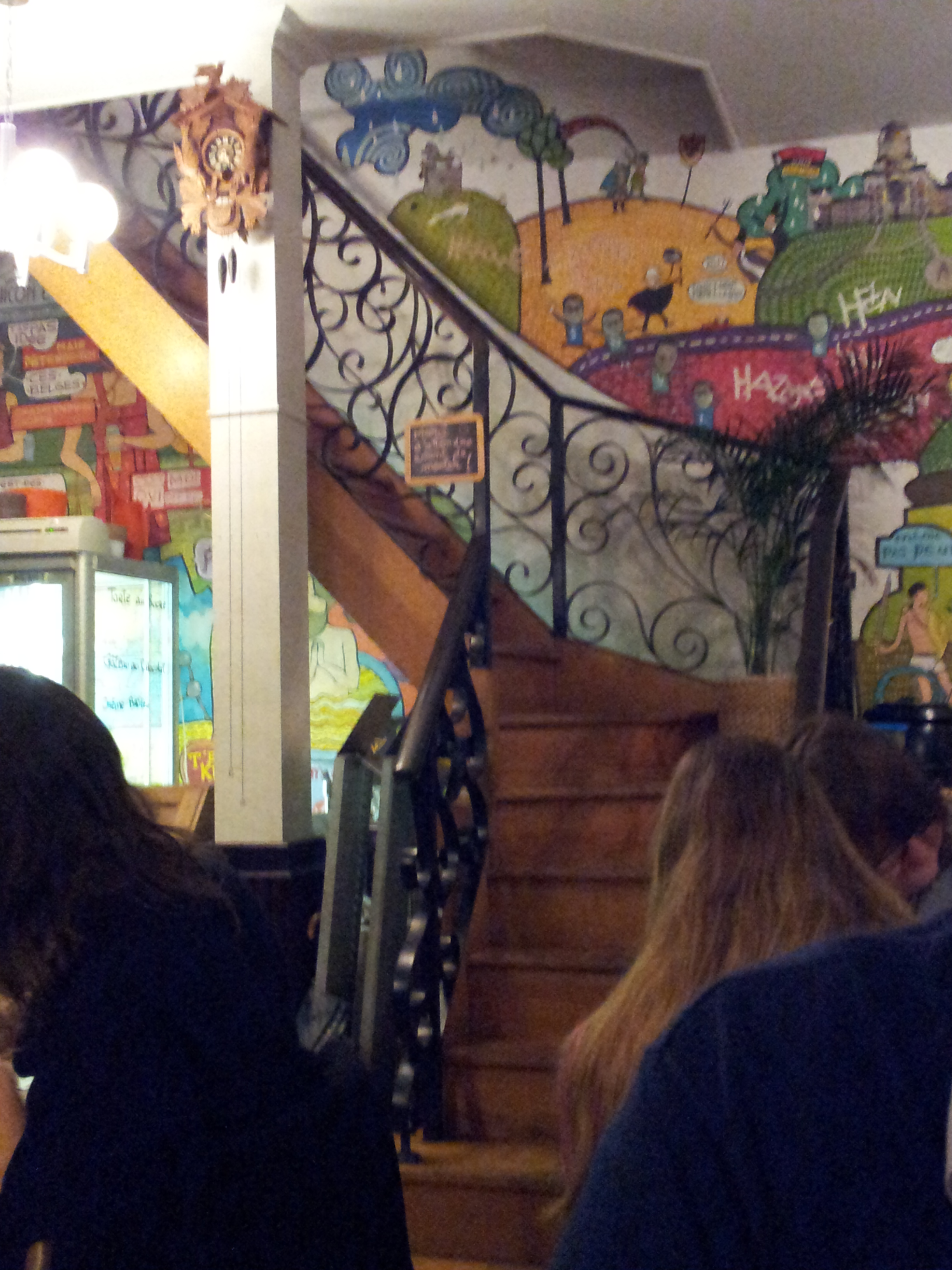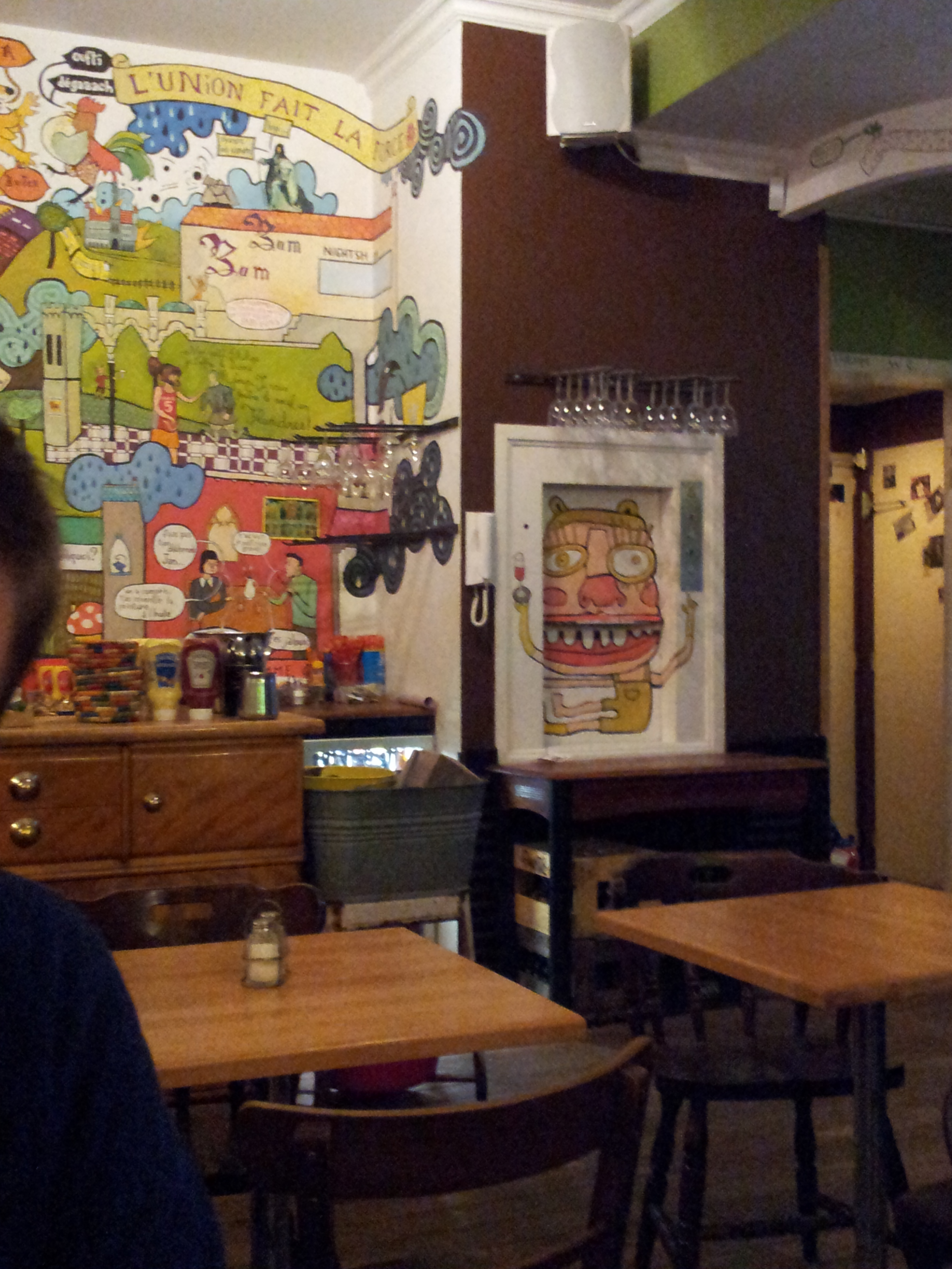 Once inside Houtsiplou, you get an instant smile on your face… All the bright colors, funny creatures on the walls + I know I’m going to eat junk food :-).