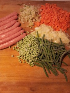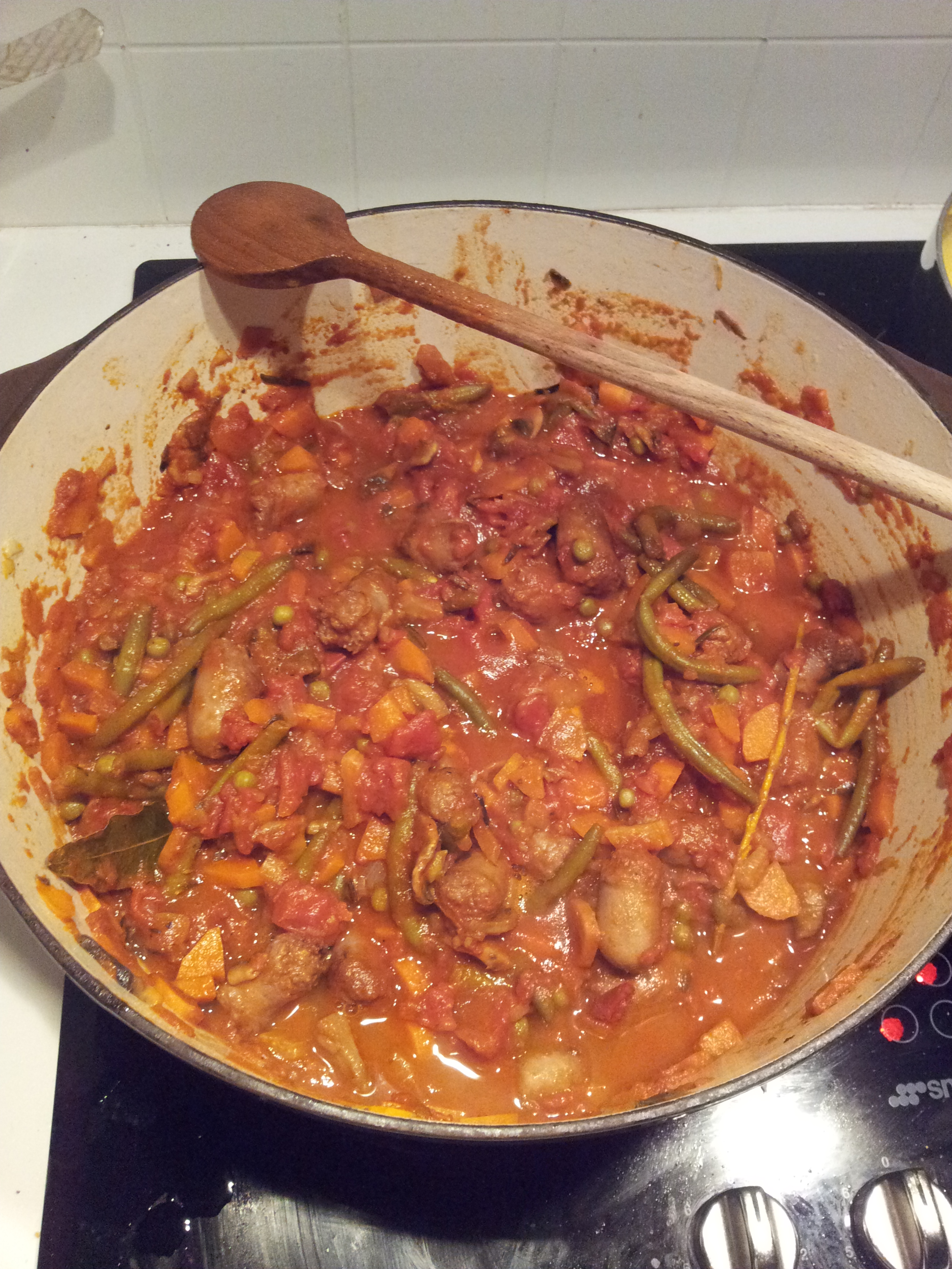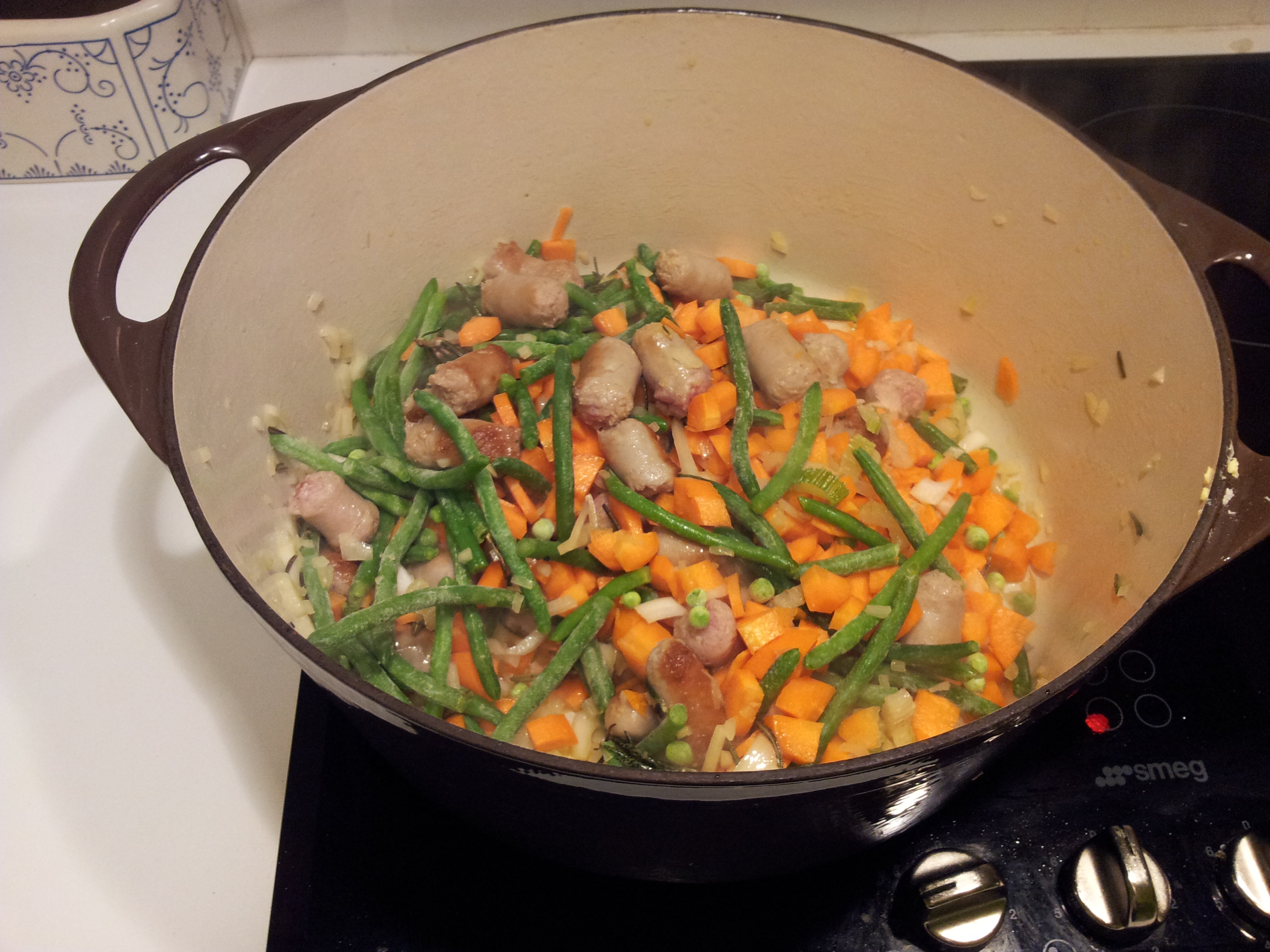 This recipe actually brings me back right to my childhood, as my dad and grandmother made this dish soooooooo many times. The original recipe is with veal stew meat, but as I was a picky eater when I was young (now I made up that lost time 🙂 ) my dad used to make it with chipolata sausage… so if you prefer the original recipe, just use the veal instead of the chipolata.