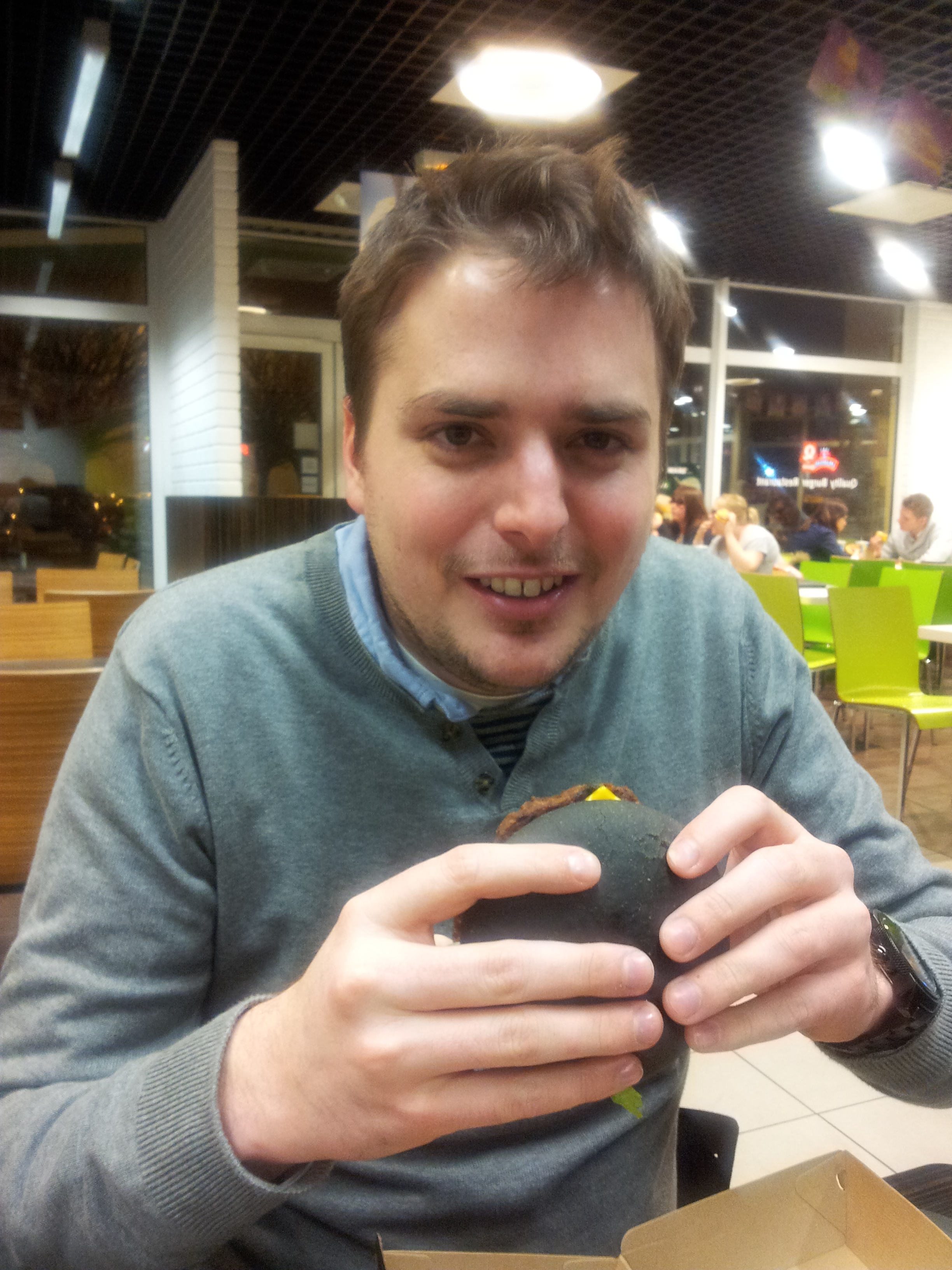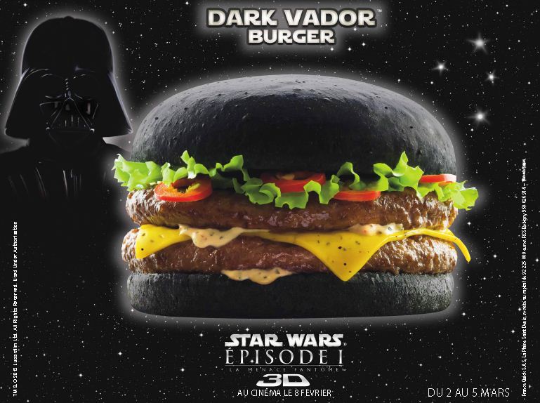 This weekend Quick France (French/Belgian fast food chain) sold a special Dark Vader burger. Although I’ve never been a big Star Wars fan, when food gets involved I started to get more interested. I know it might seem over the top to drive to France to have a hamburger, when at the local Quick they also sell special hamburgers as tribute to the new Star wars Episode 1 3D movie… But what makes the French burger more special than the burgers they make here in Belgium, well first of all the bun they use was black (and not because they burned it! On top of the black bun, they also add red peppers to spice up the burger… At first it seemed a little bit too far for me just to get a burger, but let’s just say that Valentijn (who asked me to join him to France) didn’t need to much pep talk to convince ;-)and well, this burger was only available this weekend
