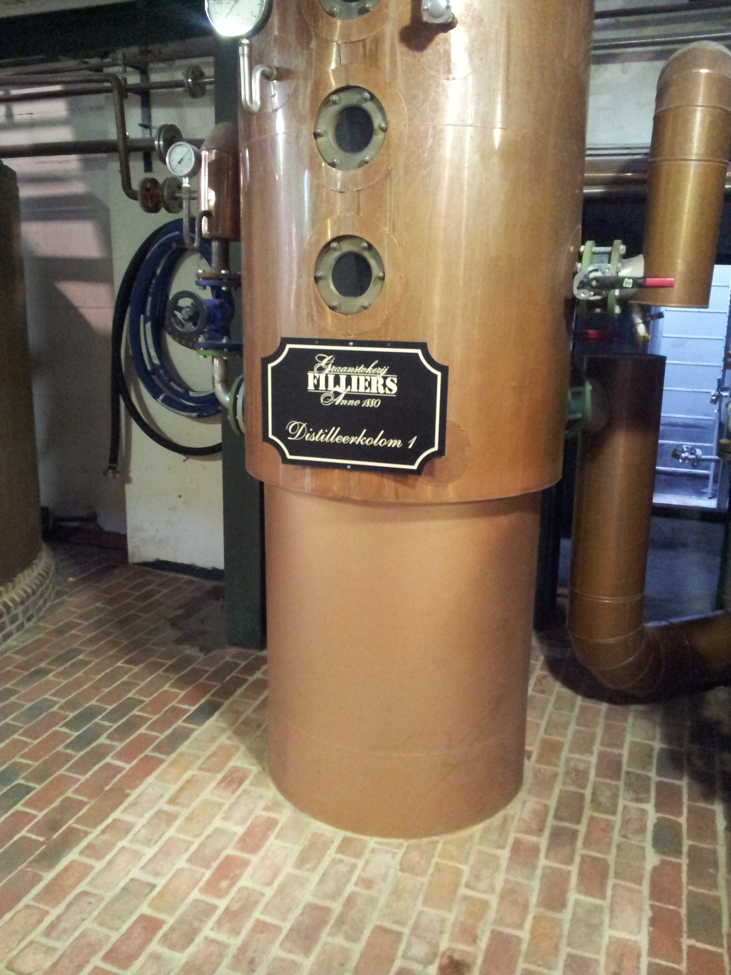 This weekend I really had a wonderful weekend, a weekend that made me even prouder to be a Belgian! Sometimes I really forget that we have so many great products. One of these products we Belgians can be proud of is ‘Jenever’, in English it is known as Gin (don’t confuse with English Gin, which has the same base, but herbs are added) or juniper. This weekend I was lucky enough to visit the distillery of Filliers, one of Belgium’s biggest ‘warm’ distilleries. Why do I say Warm distilleries, well there are2 sorts of distilleries warm and cold distillers. You can compare it like you have what we call “warm” bakeries and ‘cold’ bakeries, where in the warm bakeries they make their bread, pastries, etc… from scratch. Whereas a ‘cold’ bakery will get everything delivered. In case of the distilleries a warm one will make its own Malt wine, (is like a kind of rough beer) that is the base used to make ‘Jenever’. Just to give you an idea, in Belgium there are less than 10 warm distilleries and most of them are in the East-Flanders region and not in the Limburg as most people (including me) have always been thinking. You might really be surprised the big Jenever brands that are actually not producing their own Malt wine.