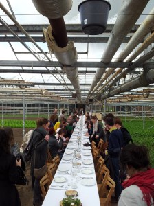 The region for the kickoff was Haspengouw,  that is at its best during spring (as then all the fruit trees are flowering up). Normally the dinner was going to be at Kasteelhoeve De Kerckhem (outside), but due to the great Belgian weather they decided to do it a different location and did it at the garden of taste greenhouses.  I really couldn’t imagine a better location! As they had put the tables right in the middle of the Greenhouse 🙂