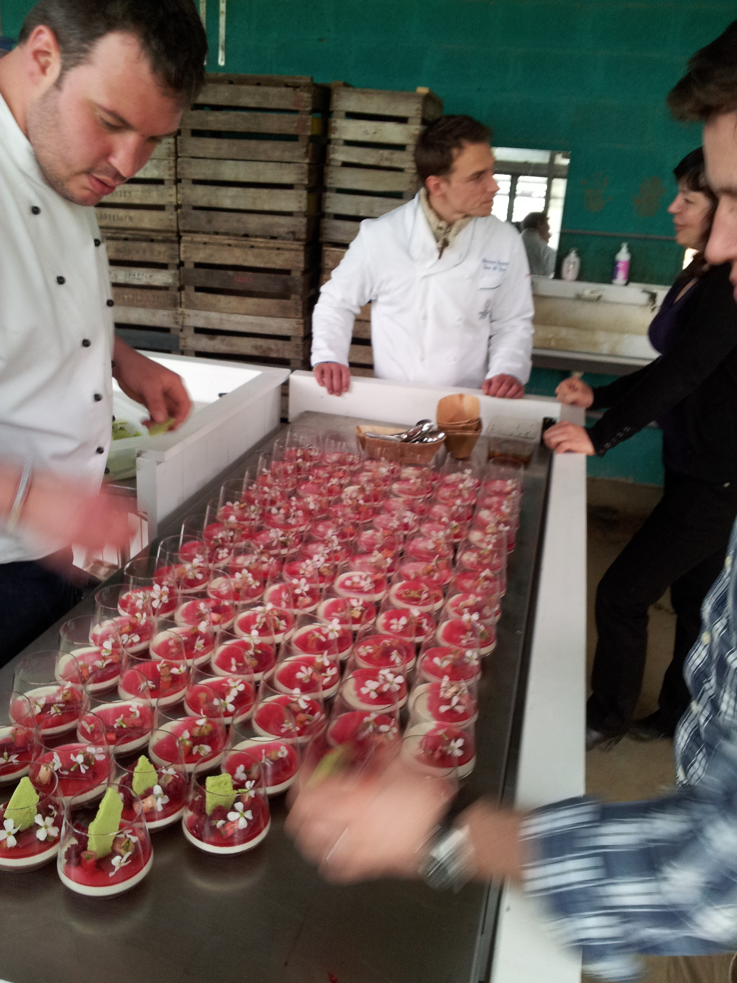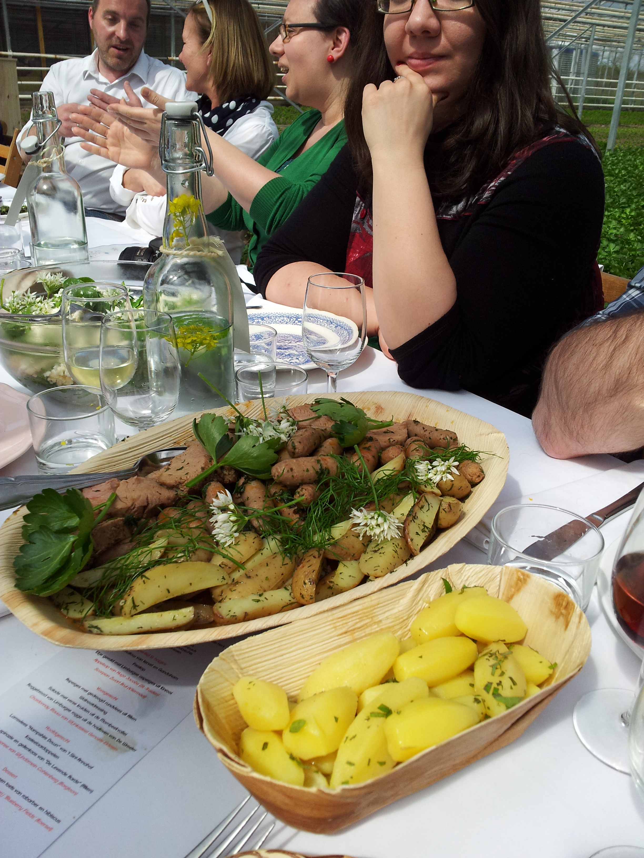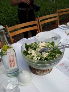 After that they gave us some lamb ‘Hampshirre down’ (also local product) with pommes chateau and a spinach salad with goat cheese from ‘De Levende aarde’. This was really the BEST lamb meat I had EVER have, it really melted on your tongue (just picturing it makes me want more).   This got accompanied by a nice Belgian red wine (that had a really light color for being a red wine) ‘De vroege Loonse’ from Cohlenberg .