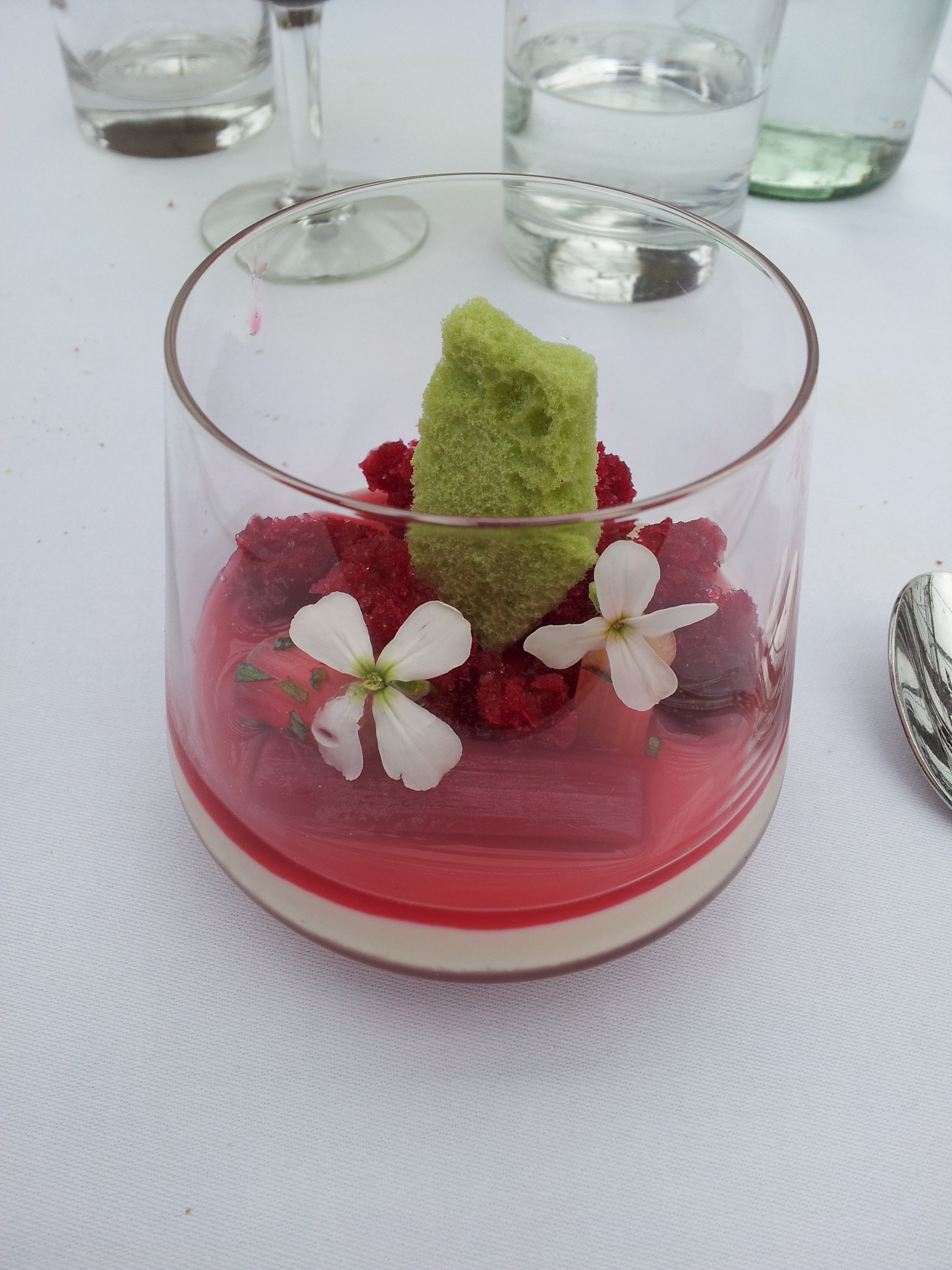 And the dessert was a pannacotta made of goat milk, rhubarb and hibiscus. This got served with I think the most special wine I have drunk in a long time, this wine was made of blueberries from Blueberry fields