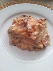 Lasagna is without any doubt my favorite dish! The best are the ones my Zia Livia makes with fresh asparagus or just with sugo di carne (just the thought of it makes want to eat them).But mine are also good :-). I want to share a fancy lasagna recipe also known as ‘Vincisgrassi alla marchigiana’. A typical recipe from the’ Le Marche’ region. Why fancy, well because there are truffles in this lasagna (not the chocolate truffles). For the sauce I would just buy truffle puree and if you feel like it buy 1 fresh truffle to scrape on top of the lasagna when serving it. (Buy the black one, this is cheaper than the white)