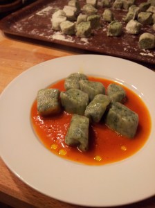 • You either put some tomato sauce on a plate  and put some gnocchi on top