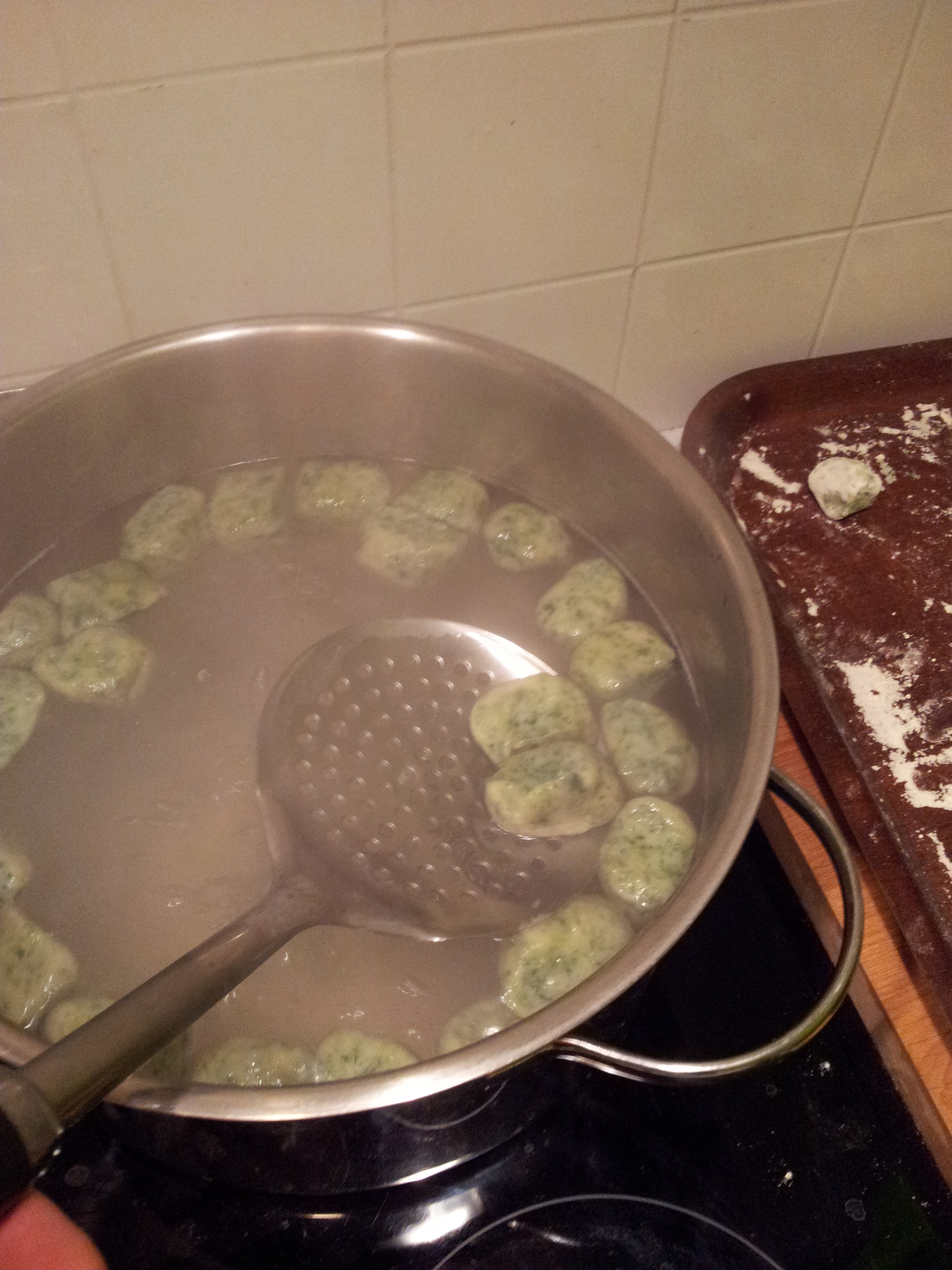 • Once the water starts boiling you throw the Gnocchi in the water one by one