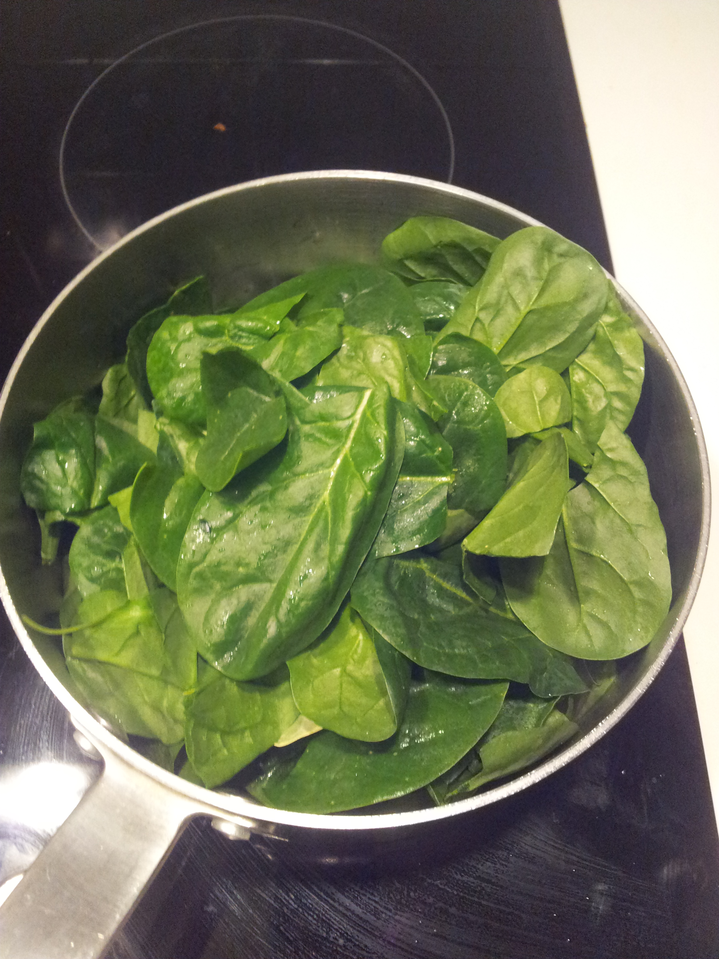 • Melt some butter in a small pot (make sure you can fit all your spinach in the pot) and throw in the spinach. Just let it absorb the butter for max 10 minutes (stir from time to time). Season with salt, pepper and nutmeg.