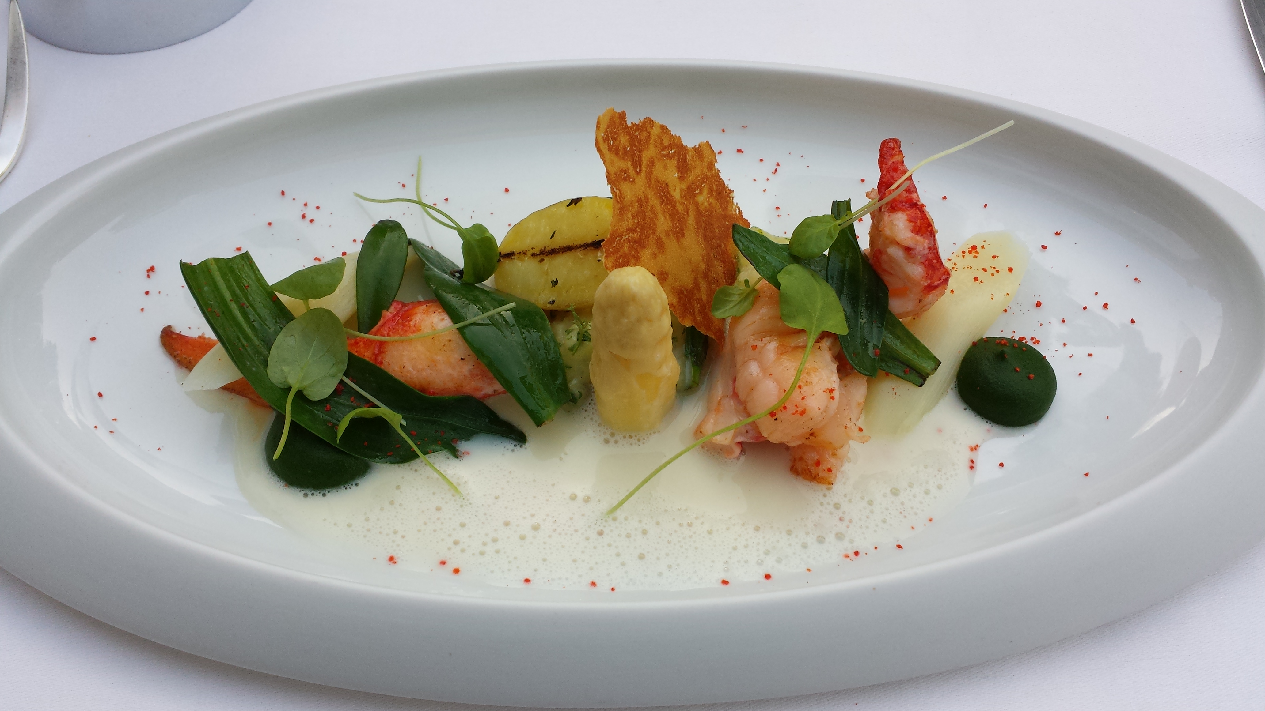 It got followed by smoked Scheldt lobster with the last asparagus from the season and a sauce made from milk and bacon. I this might have been one of my preferred dishes of the night. Served with a ‘La chouffe’