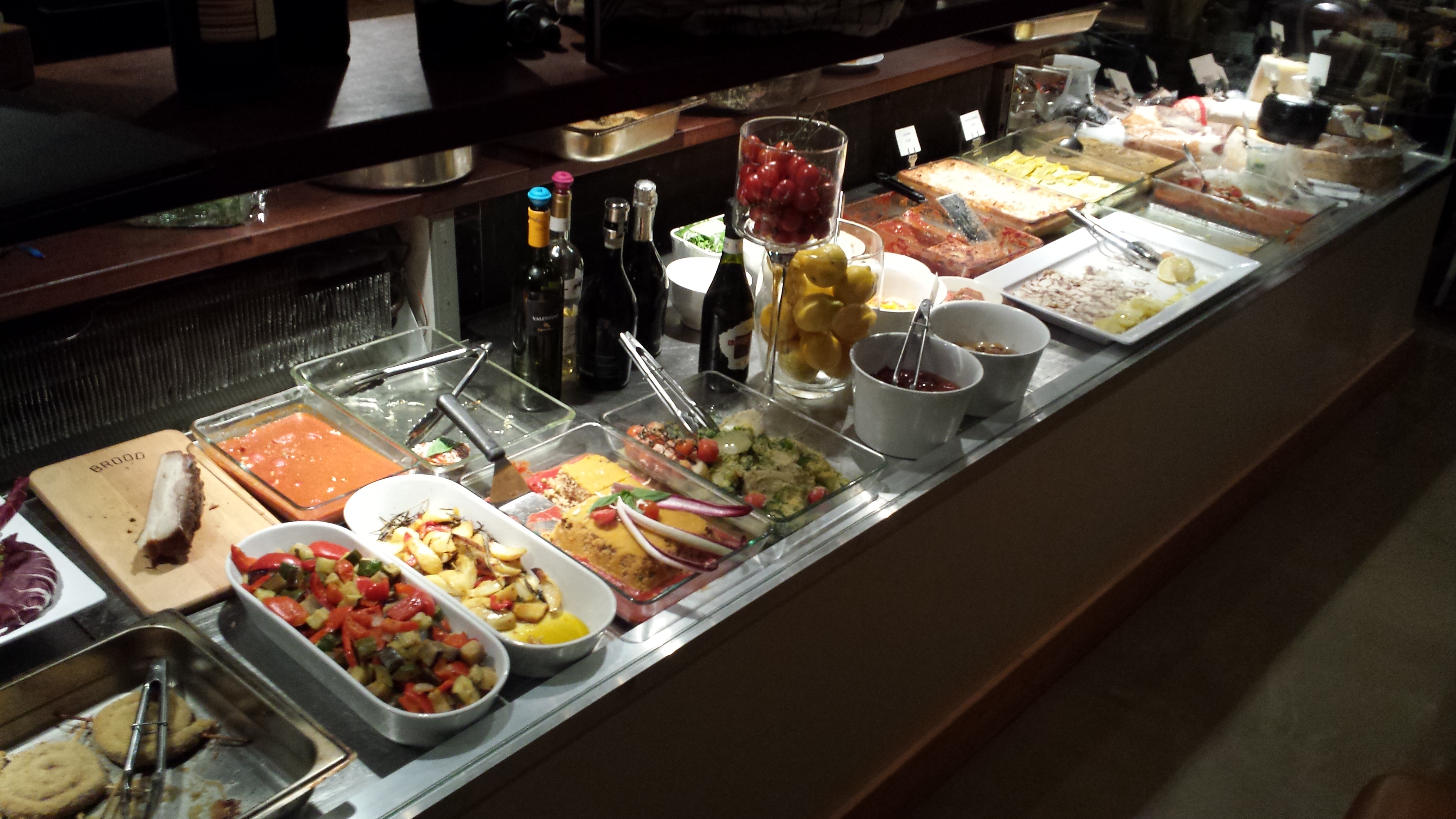My visit to ‘Fino zuid’ just proved simple is just so good. Fino zuid is a small shop/caterer around the corner of the ‘Royal Museum of Fine Arts Antwerp’ where can either take some of the dishes home or just eat them there at one of the few tables in the shop (I think 5 or 6). Fino zuid is their second eatery, they also have a restaurant in the North of the city of Antwerp. I had already been to the ‘regular’ restaurant 2 weeks ago with my dad, but wanted to wait before writing something until after visiting both places… this way I could somehow compare and see what the whole Fino concept is all about. The food is in both places very nice because of the simplicity that make you feel like in Italy. (BTW the reason why food tasted great in both places is because it gets prepared by the same people 🙂 ) But my preference goes towards Fino zuid, as it is more relaxed and less fuzz… I mean at ‘regular’ Fino you have the real restaurant feel as for ‘Fino zuid’ it feels more like a trattoria where you can just take your own glass of wine (don’t worry if you want they can also serve it 😉 ) and just point at the food you feel like eating…so to my opinion more low profile. Although I’m sure all depends of the occasion for your dinner.