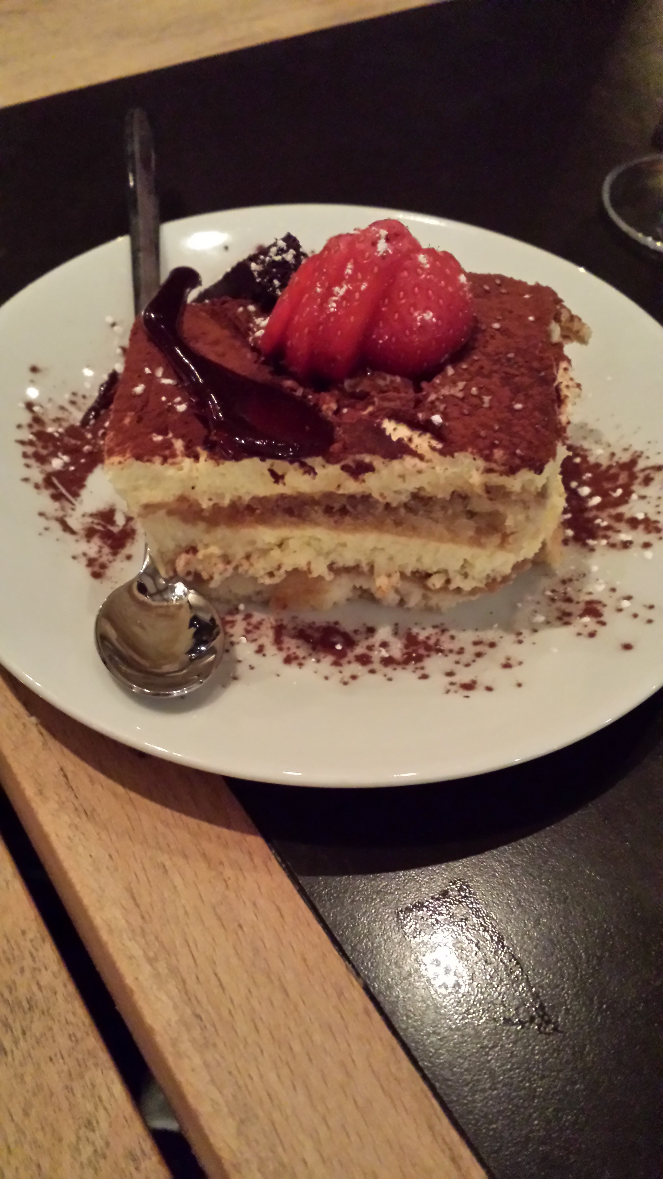 My biggest problem is ‘l’appetito viene mangiando’ so I get more hungry while I’m eating so it could get ugly 😉 Luckily my beautiful fiancée was with me and at some point will give me a certain look that I know what she is actually trying to say is: “don’t you think you had enough?” 🙂 BUT there is still always room for dessert… I’m normally not a fan of Tiramisu, but theirs wasn’t as heavy as it is at lots of restaurants. I do realize I’m always very enthusiastic in my blogposts, but good food just makes me very happy and this happiness unleashes a enormous and unstoppable amount of enthusiasm where I want to convince everybody to try the place themselves… that’s just the way I am 🙂 🙂