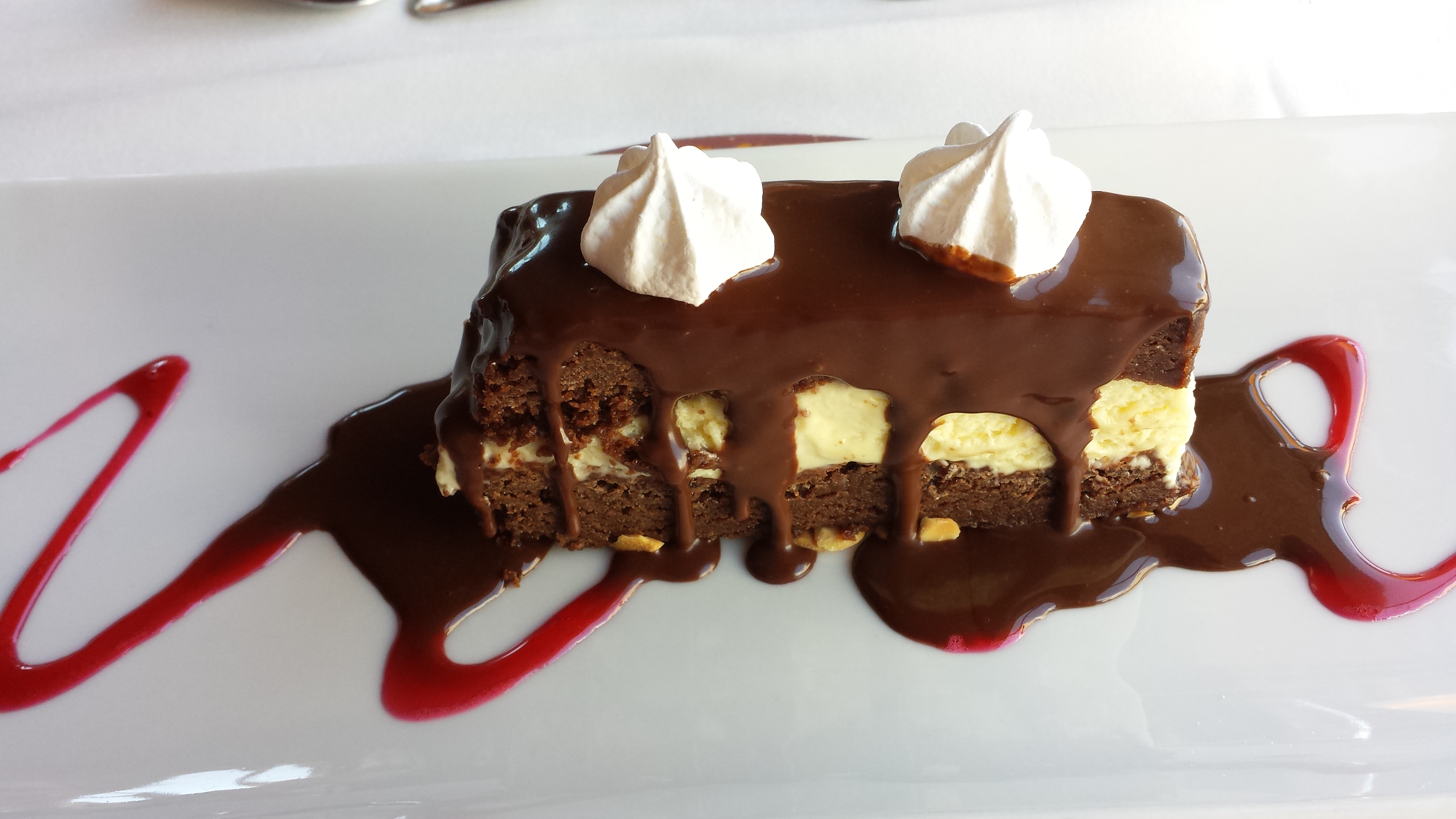 I did get hungry from all that tasting, so a “light” lunch at the Barão Fladgate Restaurant in the Taylor’s lodge (open for public). I followed our host on taking a succulent piece of Lombinho meat with a Port sauce, my fiancée on the other hand preferred keeping it light (although she made up for it with a dessert) and took the Turbot with sepia Linguini. For with our 40 year old Taylor Port we chose the perfect dessert for on a summer’s day, they heaviest (but definitely worth it) chocolate dessert from the menu: Chocolate cake with dark chocolate sauce, milk chocolate mousse and white chocolate mousse.