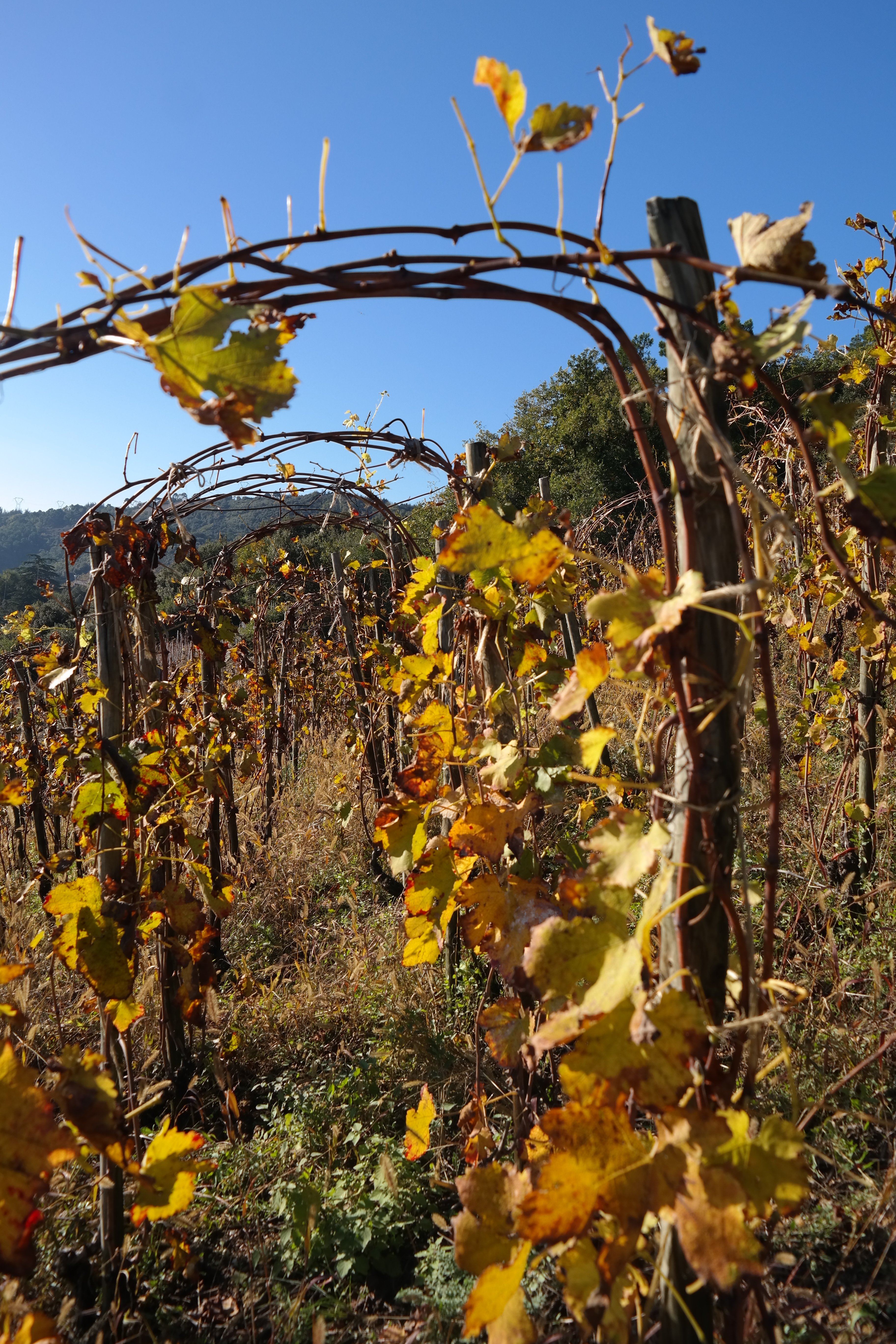 A big difference between the Jean-Luc Colombo vineyards and the ones from their colleague winemakers in the region is the way they plant and grown their vines. At the Colombo vineyard they grown the like rose arches (see picture below and I’m sure you’ll get what I’m talking about). One of the reasons for this is that this way the grapes won’t touch the soil. Something we also noticed was that they used tree bark in-between the vines, this is to keep the coldness underground and to keep the grass from growing in-between the vines…