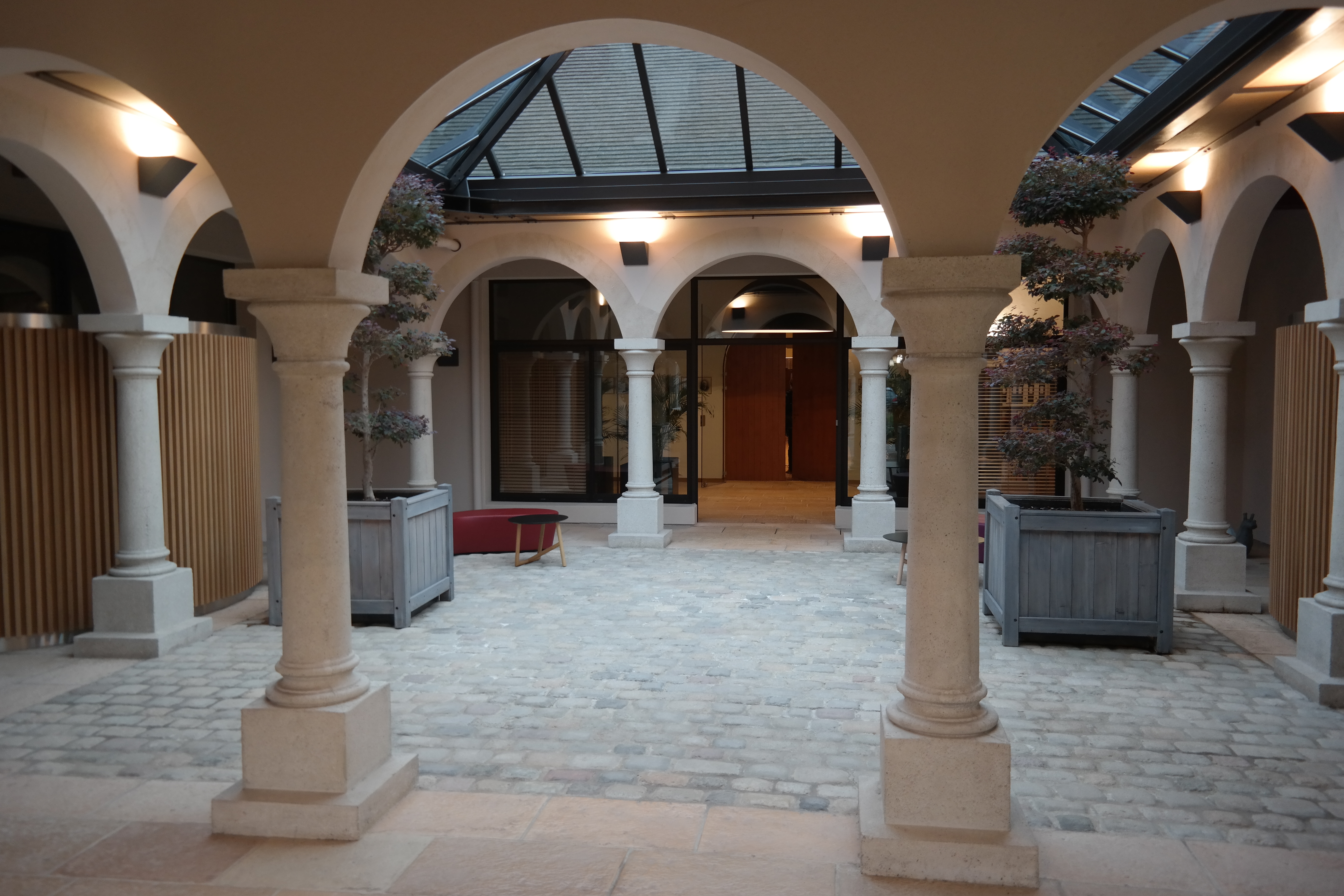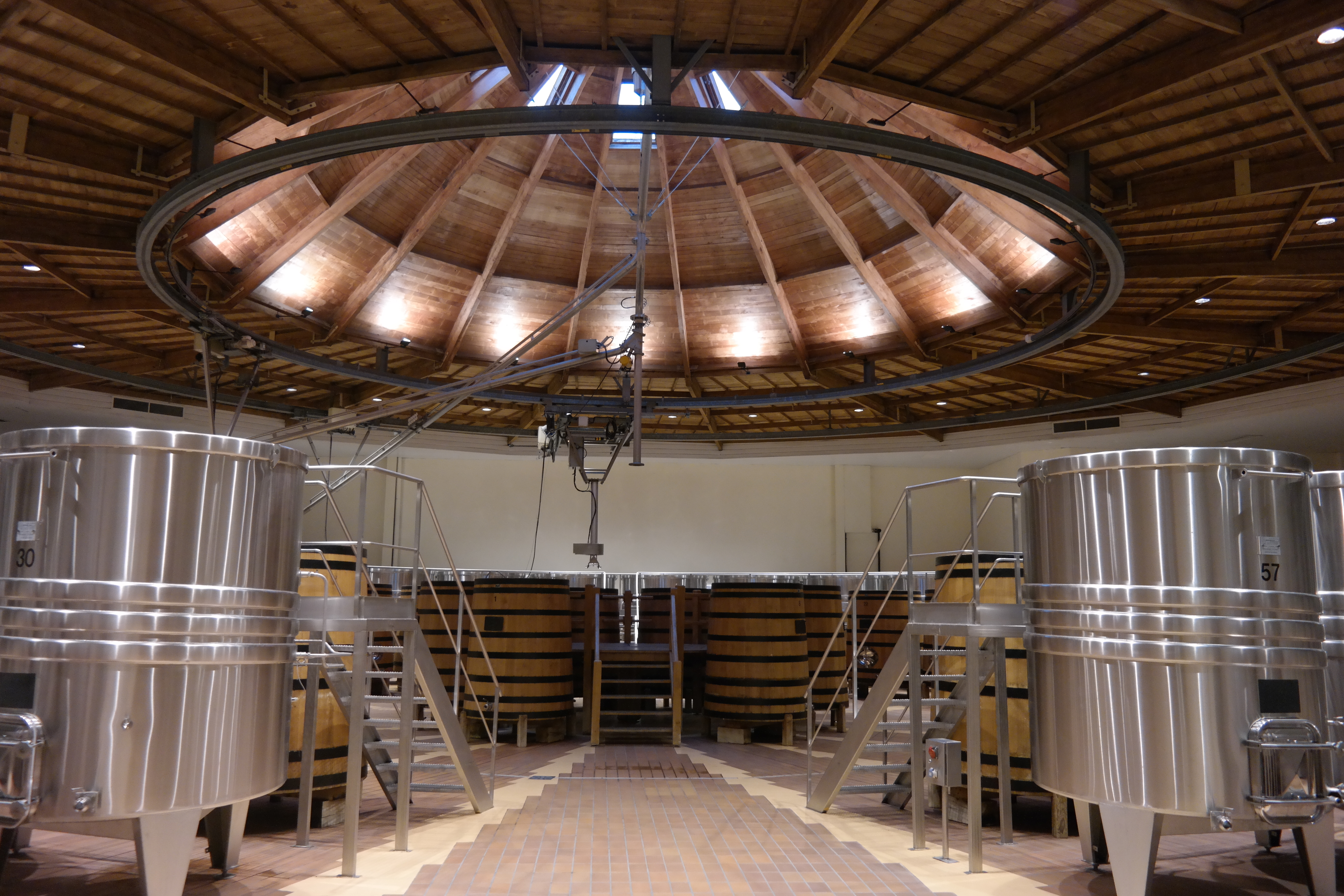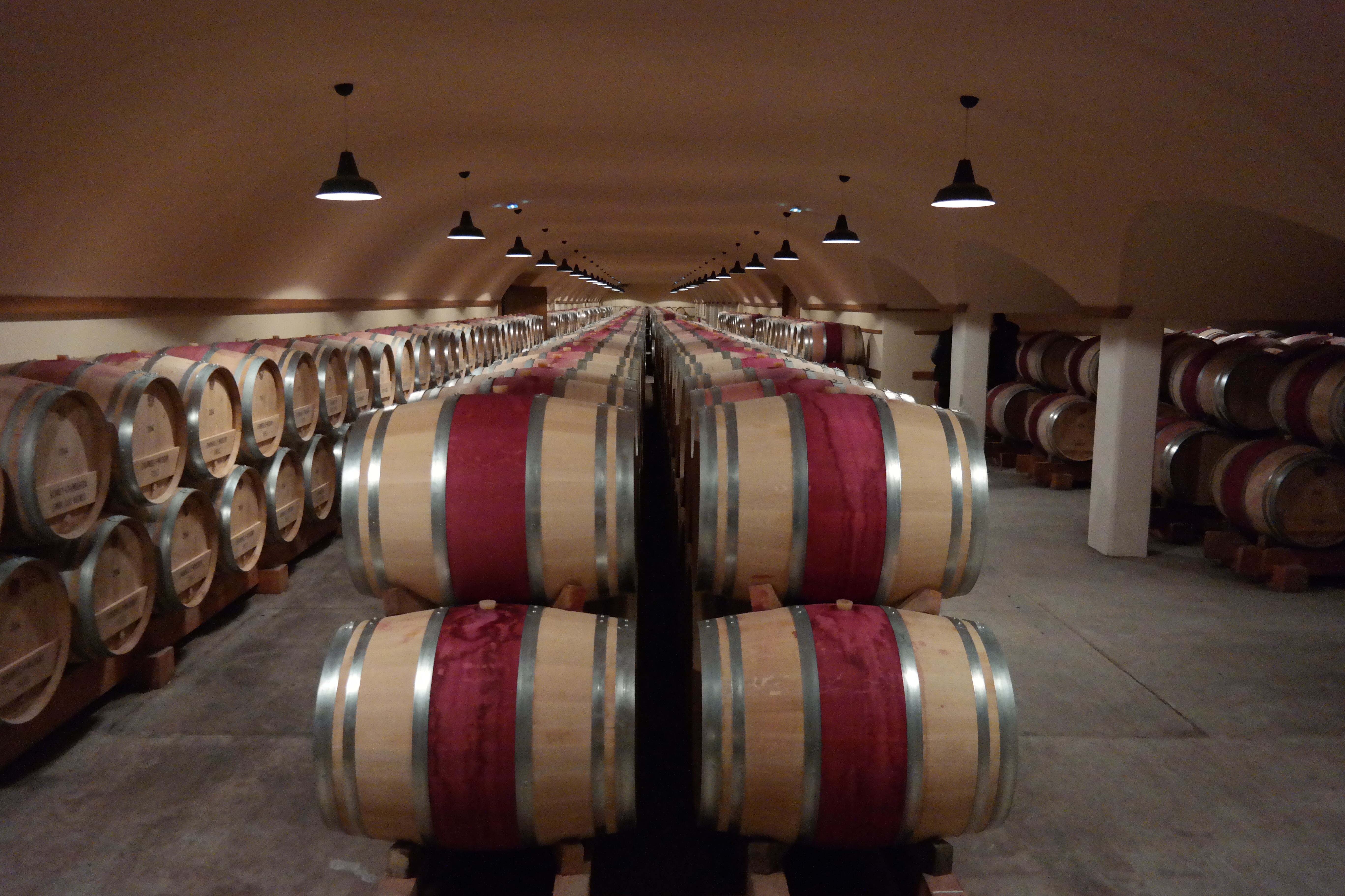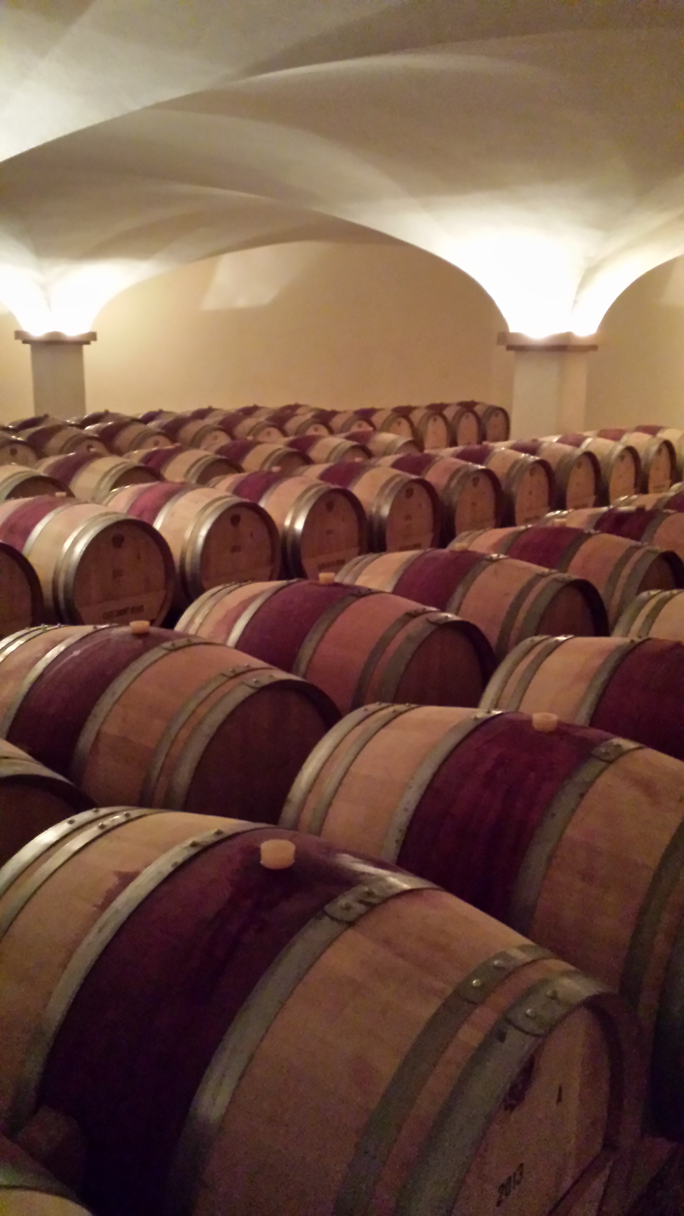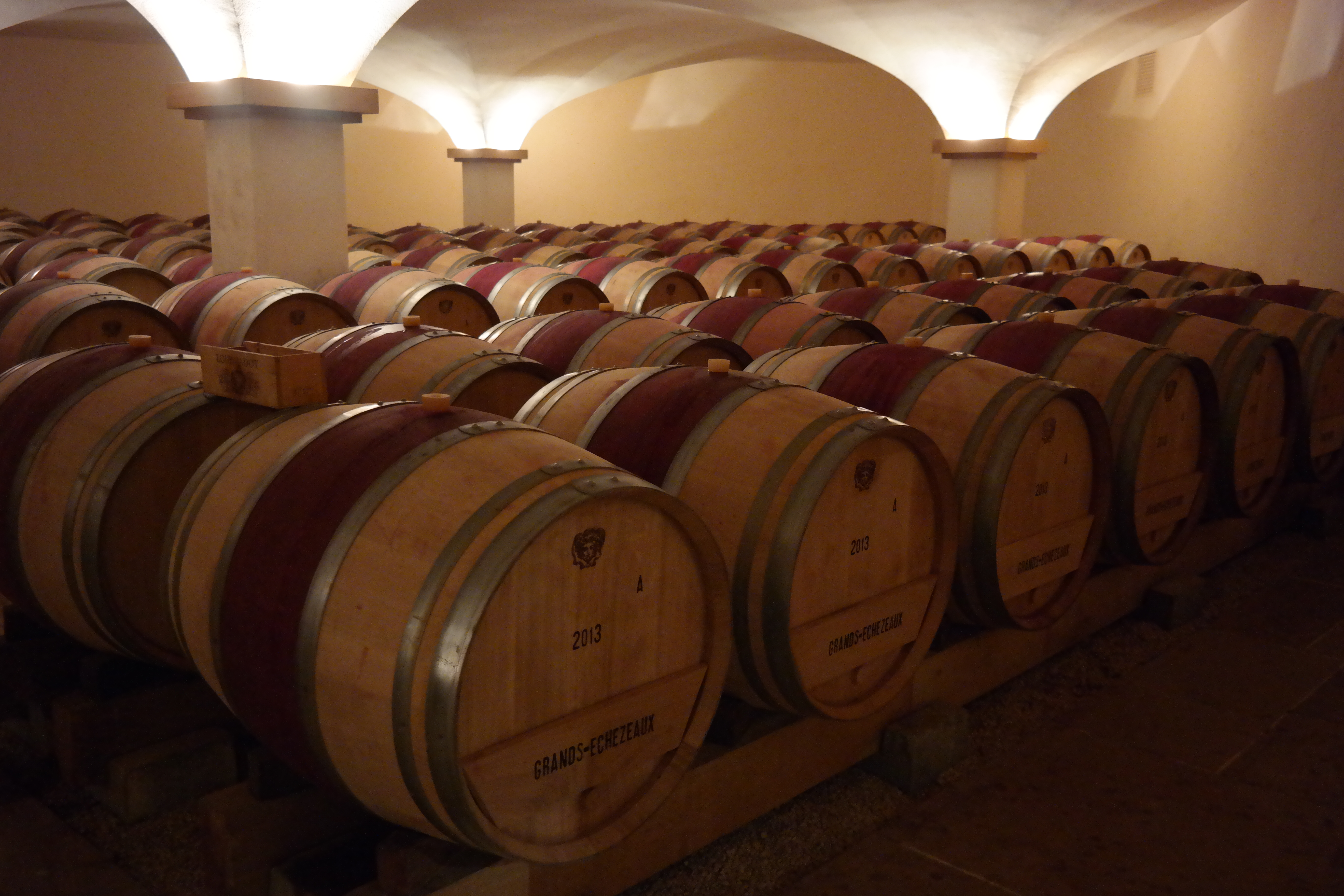 Our visit of Maison Jadot was at their ‘new’ location or better ‘cuverie’ (where they bottle and ago most wines except for the old vintages) where they moved in just a few years ago . I would have loved visiting their original location aka ’Couvent des Jacobins’, that as you might already guessed from its name used to be a convent. The ‘Couvent des Jacobins’ is still used as storage/aging location for the Grand Cru wines and some of the older wines… but one cannot have it all and  their new location is as magnificent and incredible but just more modern :-). The mental picture that sticks in my mind when I think back (besides the one from the enormous cellar) was the production hall. Yes, production hall!! It reminded me a bit of a concert arena (that big) where they had a specific way to make and distribute their wines in/to barrels and stainless steal (INOX)tanks. They pump the grapes in INOX tanks  via a unique stubbing system that I have never seen before. Also they will be pumping the grapes in both INOX  and wooden barrels, the reason they pump it in both types of barrels is purely related to space 🙂  as in that stage the types of barrels don’t matter yet. FYI the aging in tanks all happens naturally, as for as far as we were told there is no temperature control! Like for example the Gamay grapes they destem the grapes in order to allow them to undergo a vinification according to the traditional method from the 19th century. This basically means the fermentation is done with wild yeasts, with maceration periods lasting two up to three weeks. What I also noticed during their explanations by Baptiste (our guide) is that as they don’t regulate their temperatures automatically they depend on seasons and weather even more than other vineyards. Anyhow, a very interesting method they use!