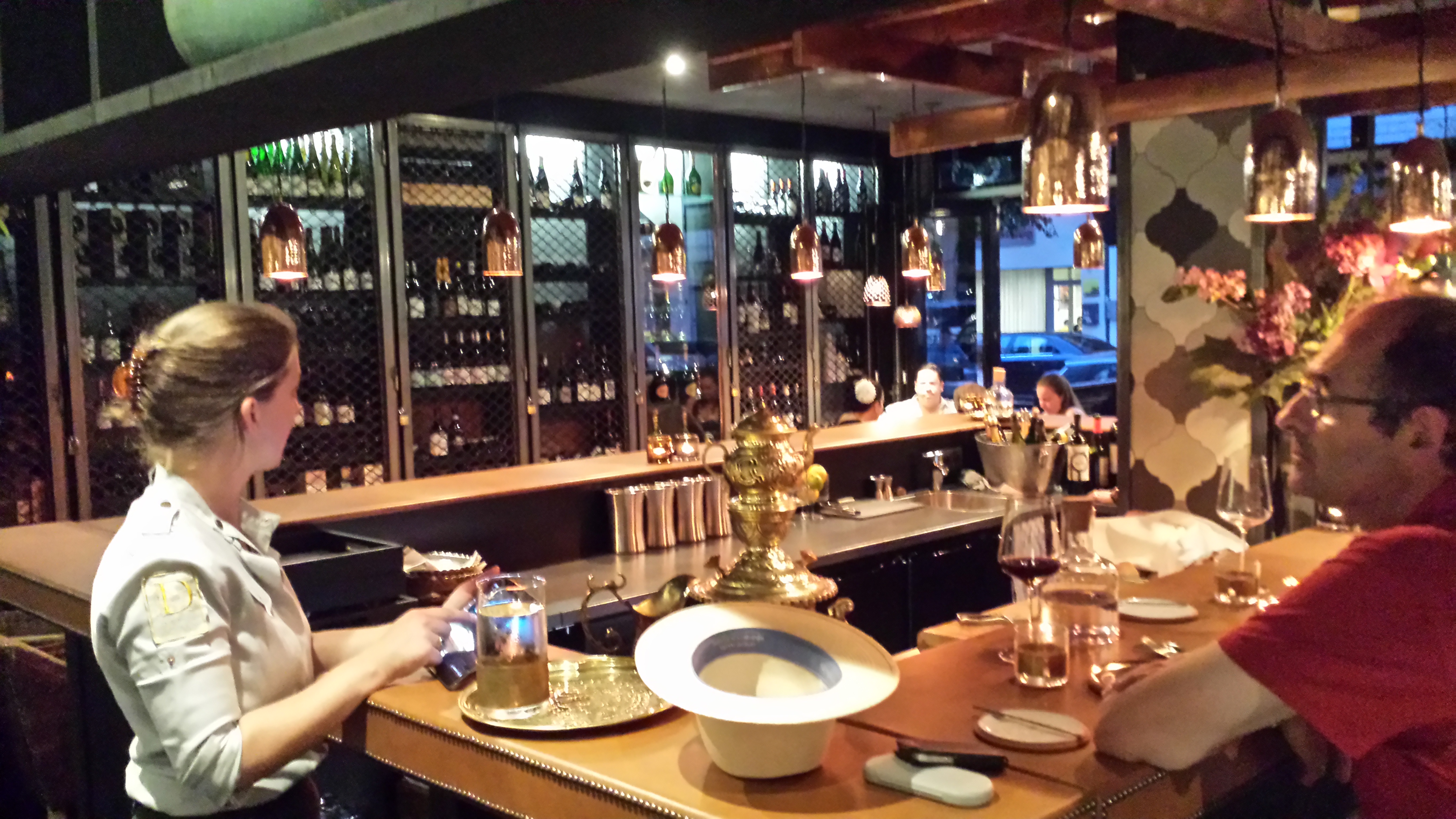 In my article about Sepideh’s book I said it was a pity there wasn’t a pocket version of the book. Good thing at the restaurant I didn’t need the pocket version as I had the original version 🙂 🙂 Sepideh in person…. I must say that Divin by Sepi has one of the broadest selections of wine I’ve seen in a restaurant. She has great wines from every continent (besides Asia I think) with a representation of a lot of countries of these contents, including the Middle East, Greece, etc.. Probably you’re thinking ‘Freak’ 🙂 “Whatever’ would my response to that be 😉 . The list was also nice a there were lots of wines on their that I’m sure nobody knows or barely know…but that are mind blowing!! For after the bubbles to make us feel even more on holiday Sepi thought a nice rosé by domaine OTT from the Provence would set the mood for with the finger food.