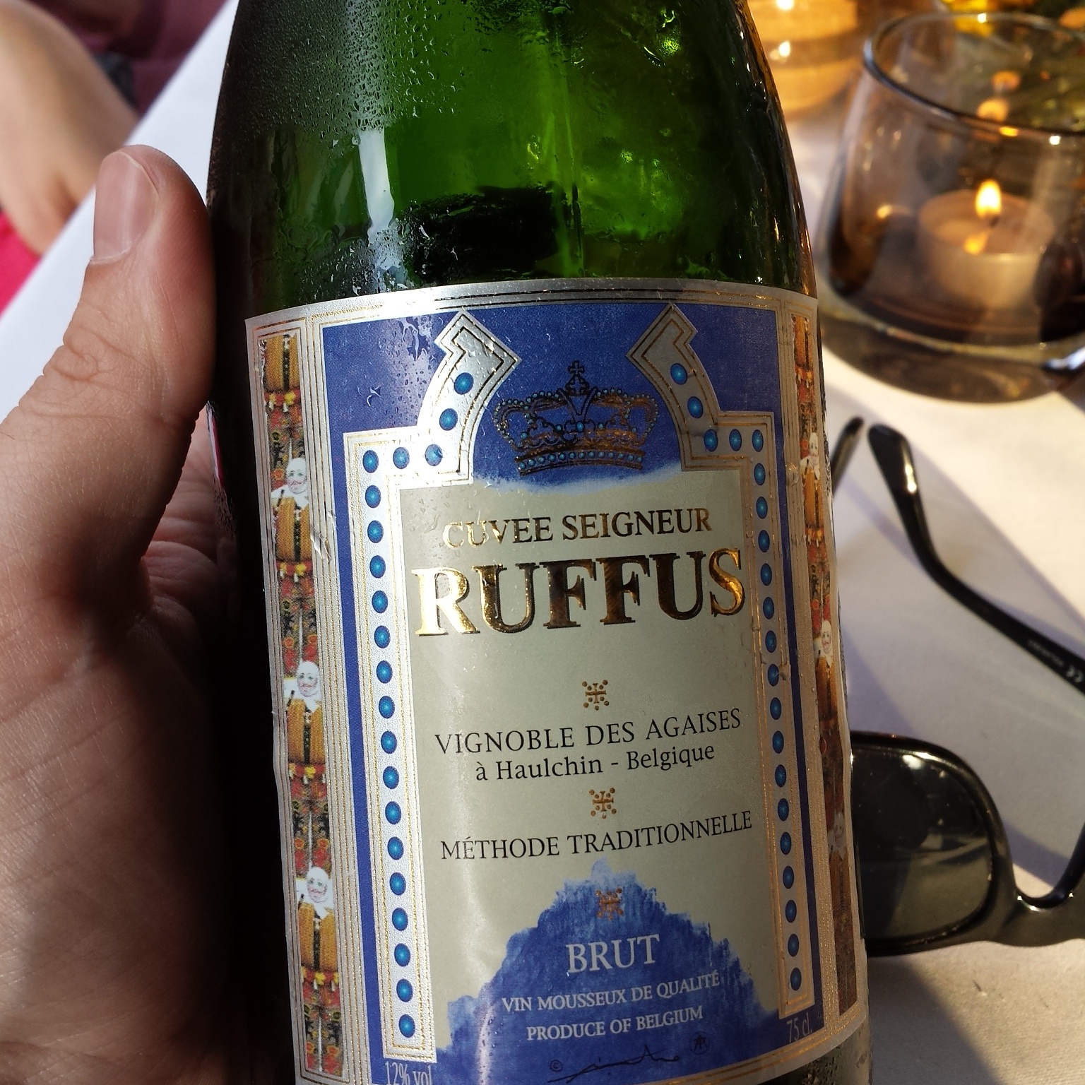 You might have noticed I didn’t speak about wine yet 🙂 and no not because we didn’t have any… We started our evening in a bubbly way with some Belgian bubbles from Ruffus which tasts just like champagne. FYI the reason it tastes like it is because where the grapes are grown, the soil is the same as the one in Champagne (Champagne’s soil ends in the Belgian region where Ruffus is made). That and the knowhow from the people making it 🙂 . If you ever get the chance of drinking it, I strongly advice it!