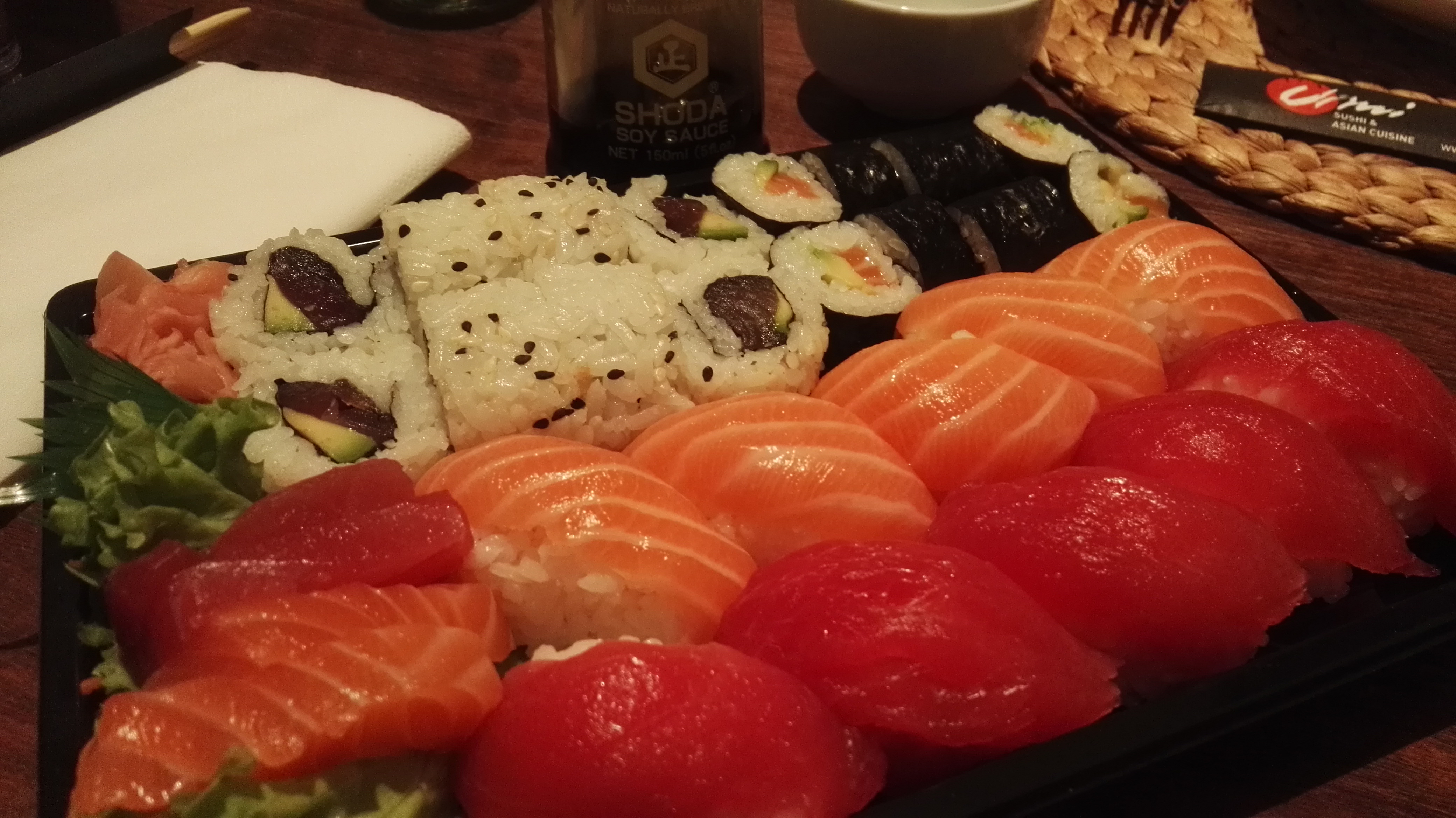 My initial thought was that you’d only be able to order pizza to get home delivered, but let’s just say that over the year’s the range of food you can get home delivered has grown!! I was surprised of the wide assortment of cuisines. Does this mean people got much lazier? 🙂 😉 My wife and I decied to order some sushi (although the fried chicken did also look tasty. I actually wanted dim-sum instead of the sushi (as my wife is a bigger Sushi fan then I am), but my wife “forgot” to order it 😦