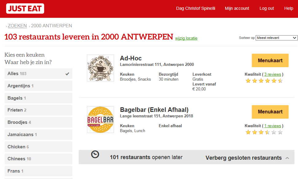 Just eat basically bundles all the restaurants that do home delivery and you order your meal via their website. You can see it as online shopping, but in this case for a prepared meal :-). Only in a few mouse clicks  you can order you meal hours, even hours  in advance!! So not like in the old days where you had to wait for the restaurants to be open before you can pass your order. You just indicate where you are located, after this you’ll get a page with all the restaurant that do a delivery in that specific location. Go to the menu and place you order and if wanted you can already pay in advance. After that it’s just waiting for it to be delivered 🙂 It doesn’t get easier than this on a lazy evening, you only have to get out of your couch to open the door 🙂