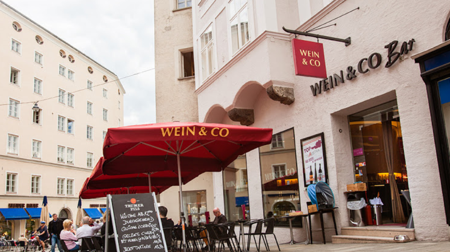 In the end I didn’t need my “plan B” as while walking around in the old part of Salzburg city we saw a very nice looking hamburger restaurant called Burgerista. I know it isn’t very Austria-like, the place just looked good and let’s be honest who doesn’t like a fresh “home-made” hamburger?? As it was still a bit too early to eat and our sweet little monkey had fallen asleep (moments to cherish 🙂 ) we thought a nice glass of wine or bubbles seemed like a great way to start our holiday… especially after such a long drive we deserved it. This brought us to Wein & Co that remembered from last time we were here. Wein & Co is a wine bar/wine shop with a very nice wine selection for everybody’s taste and wallet 🙂 (from Austria and abroad). Definitely a place to recommend!