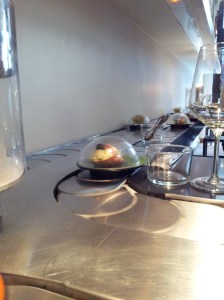 We started our evening with a variety of “amuses bouche” a feast for both the eyes as the taste buds. Rice croquettes, cucumber bonbon, salmon and asparagus role … just to name a few…. I had a classical “Gin tonic” with it, but they had replaced the gin with a local grain jenever.